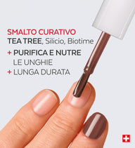 Ogni colore è formulato con biotina, silicio e tea tree per unire cura ed estetica. La scelta perfetta per chi desidera uno smalto che si prenda cura delle unghie senza compromettere la bellezza. Tutte le tonalità sono disponibili nella scheda prodotto dello smalto.