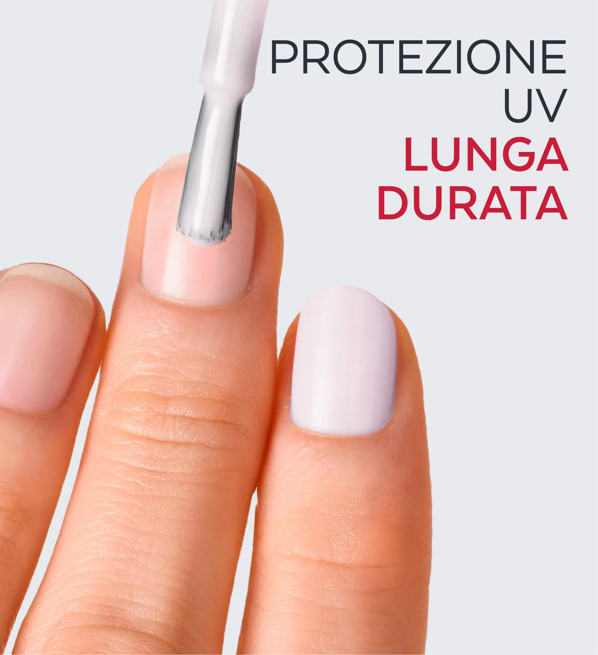 Gli smalti Color Care e Color Strong offrono una protezione UV per proteggere le unghie e la pelle sotto l'unghia dai danni causati dai raggi solari (esclusi top coat, base coat, gloss vitality e gloss éclat).