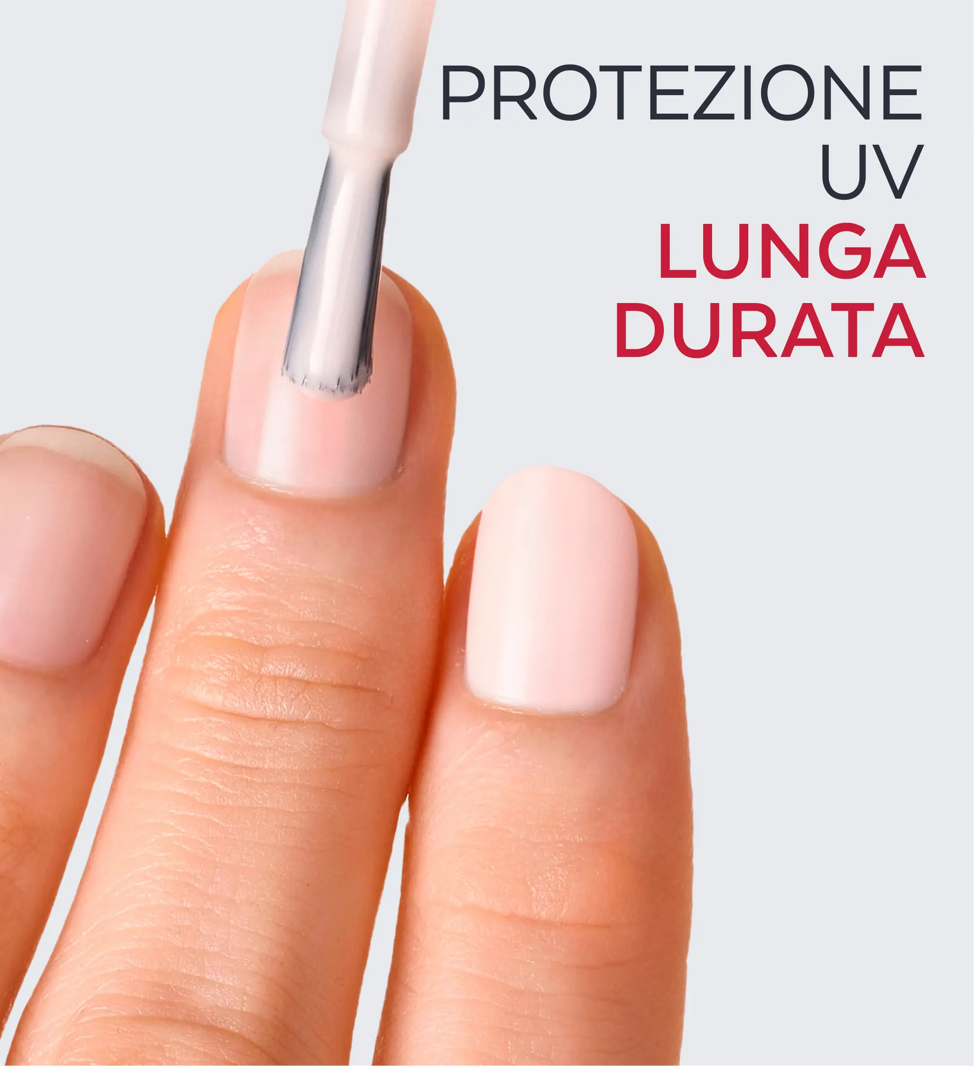 Gli smalti Color Care e Color Strong offrono una protezione UV per proteggere le unghie e la pelle sotto l'unghia dai danni causati dai raggi solari (esclusi top coat, base coat, gloss vitality e gloss éclat).