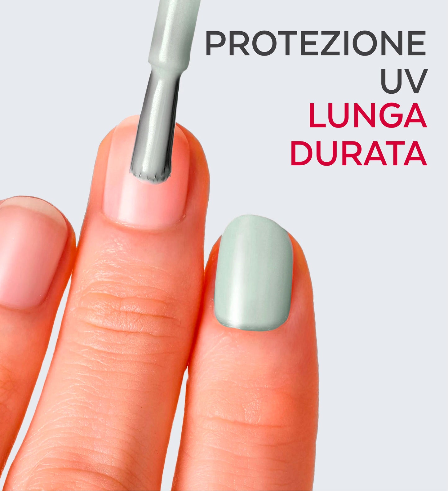 Gli smalti Color Care e Color Strong offrono una protezione UV per proteggere le unghie e la pelle sotto l'unghia dai danni causati dai raggi solari (esclusi top coat, base coat, gloss vitality e gloss éclat).