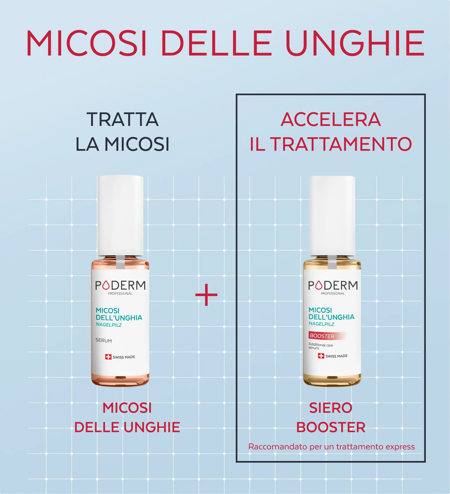 Applicare PODERM® Booster Serum due volte alla settimana, preferibilmente prima di applicare PODERM® Nail Fungus Serum.