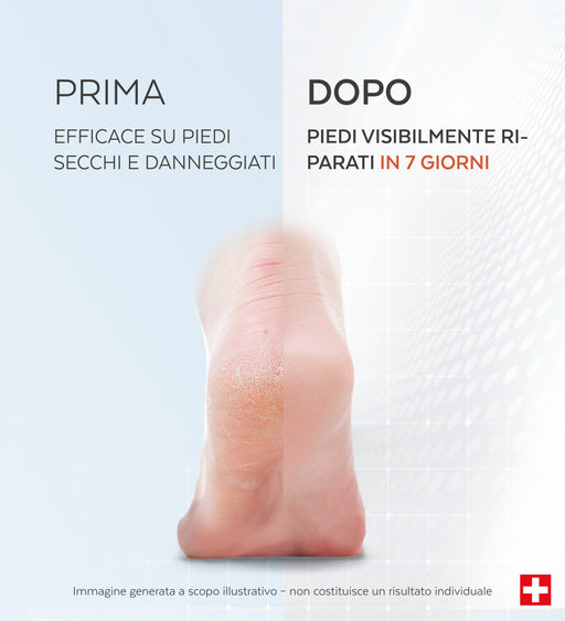 Applicare il siero sui piedi puliti e asciutti, prestando particolare attenzione alle zone secche e ai talloni. Si consiglia di utilizzare il siero mattina e sera fino al raggiungimento del risultato desiderato o fino alla completa riparazione della pelle dei piedi e dei talloni.