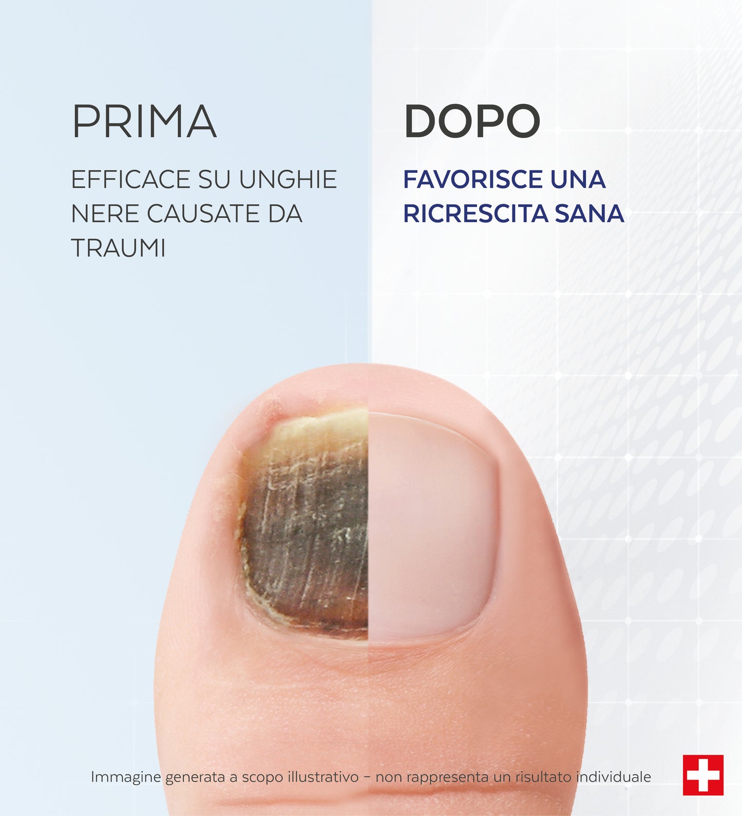 Sì, la soluzione contiene vitamine essenziali per la struttura delle unghie, aiutando a mantenere unghie forti e belle. Inoltre, previene la comparsa di ematomi sotto le unghie, in particolare durante gli sport come la corsa. L'alluce è spesso interessato da ripetuti urti alle unghie nelle scarpe.