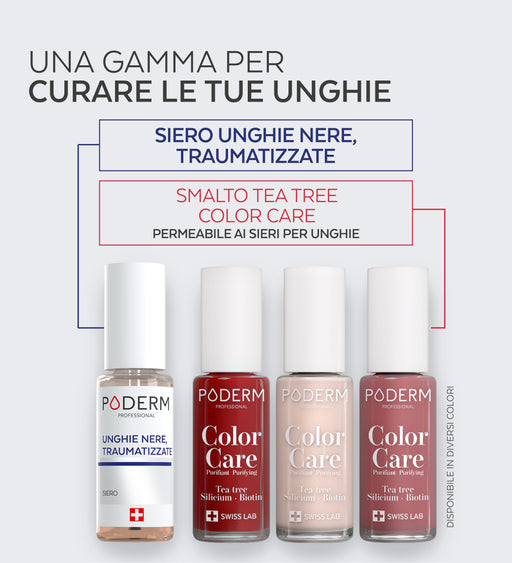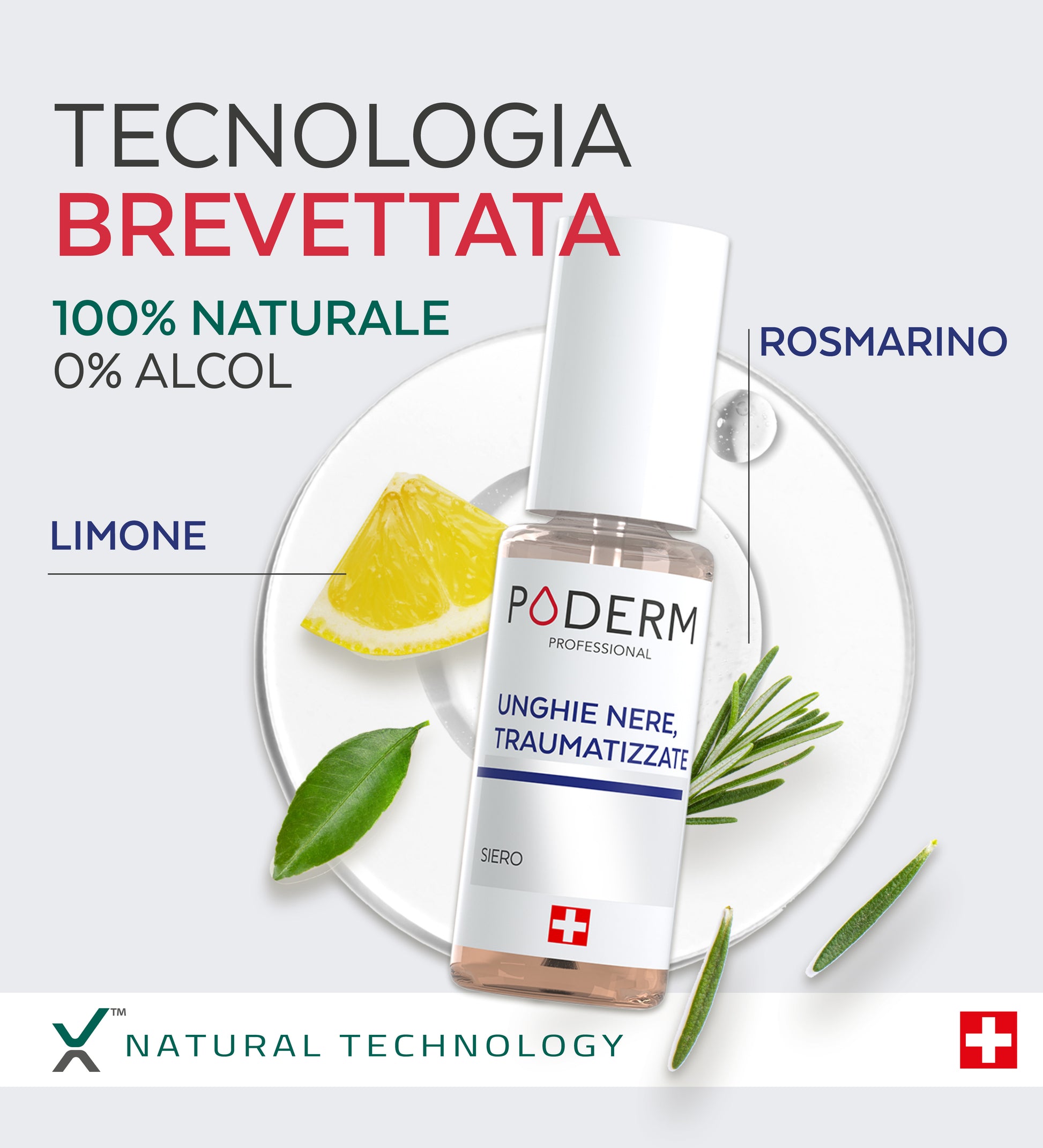 PODERM® Siero Unghie nere, traumatizzate ripara e protegge le unghie blu o nere causate da ripetuti microurti, sia durante gli sport come il calcio, il rugby, il trail running, lo sci o la corsa, sia semplicemente durante le attività quotidiane.