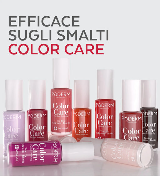 I sieri Poderm non sono smalti, quindi non si asciugano. Agiscono sull'unghia e formano un film lipidico sulla superficie dell'unghia.