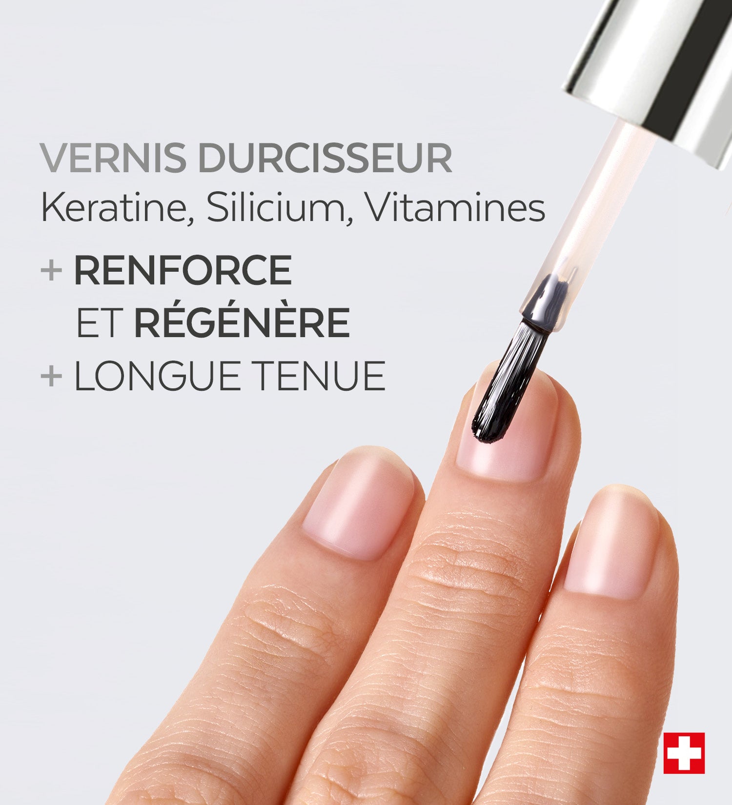 La base permet de protéger et renforcer l’ongle, tout en offrant une meilleure adhérence du vernis. Elle prolonge ainsi la durée de vie du vernis.