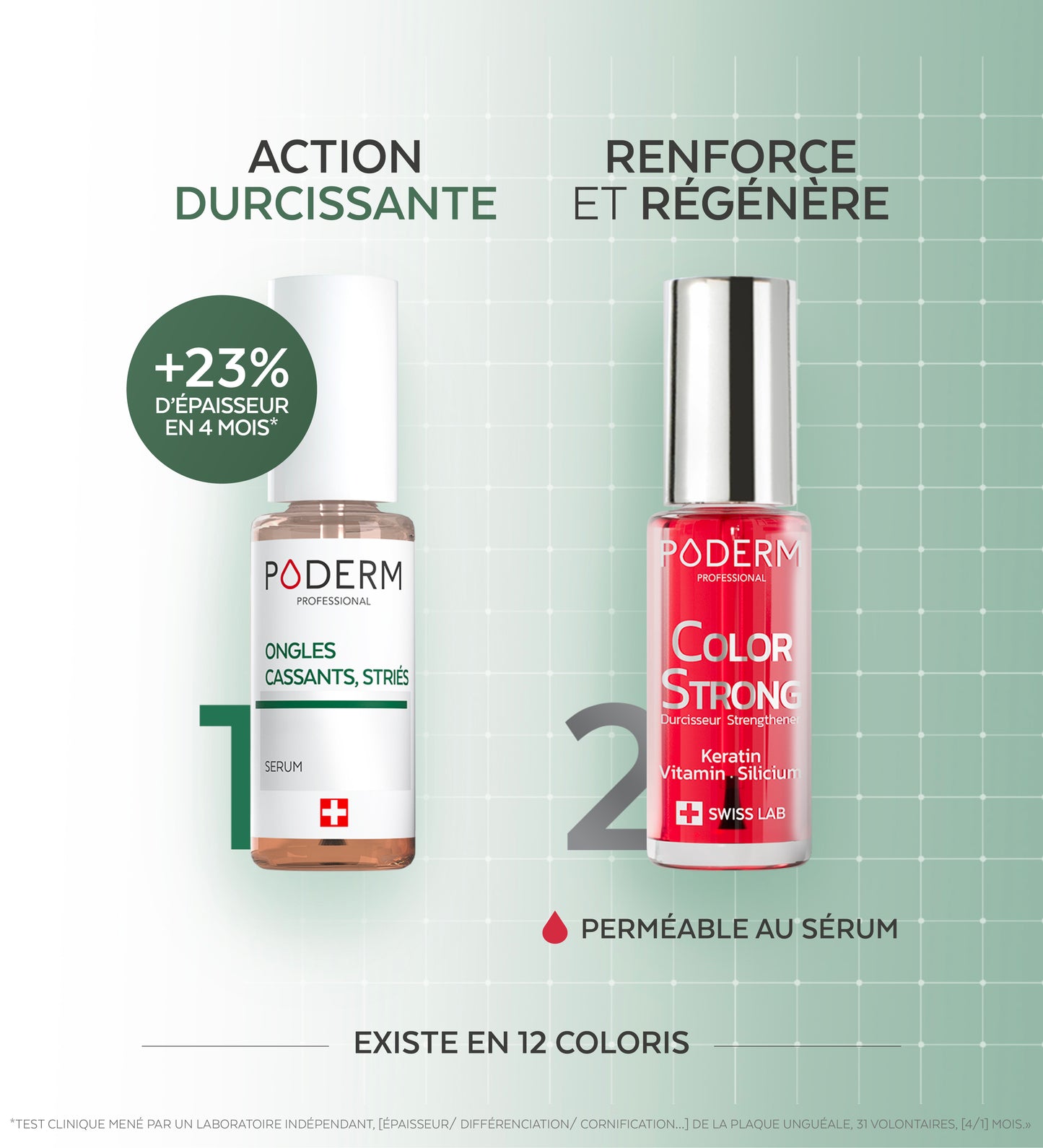 *Test clinique mené par un laboratoire indépendant, [épaisseur/ différenciation/ cornification…] de la plaque unguéale, 31 volontaires, [4/1] mois.