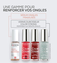 Oui, il peut être utilisé en complément des vernis soin durcisseurs Color Strong de Poderm, qui sont perméables au sérum, permettant ainsi d’embellir les ongles tout en les traitant.