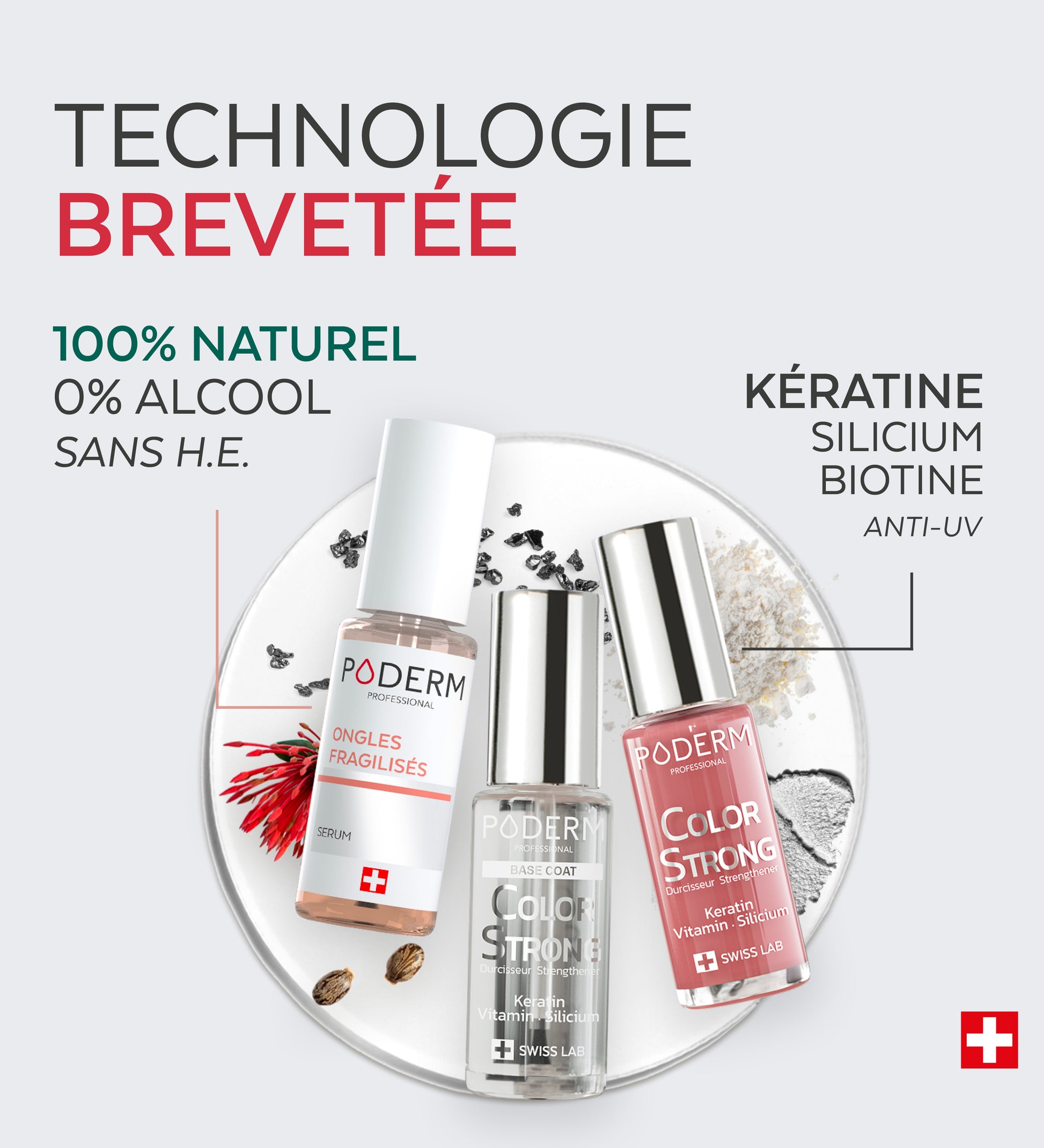 Le silicium est un oligo-élément essentiel à la bonne santé des ongles. Les vernis durcisseurs Color Strong sont enrichis en silicium, et aide à renforcer la structure de l’ongle, à prévenir le dédoublement et à limiter la casse. Les vernis durcisseurs Color Strong renforcent les ongles fragilisés, tout en offrant un fini esthétique.