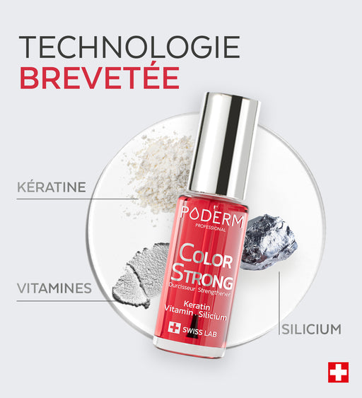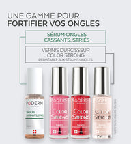 Les gammes de vernis Color Care et Color Strong sont perméables aux sérums pour ongles PODERM®, permettant ainsi la continuation de vos soins. Les deux gammes sont enrichies en biotine et en silicium pour favoriser une repousse saine et forte de l’ongle.