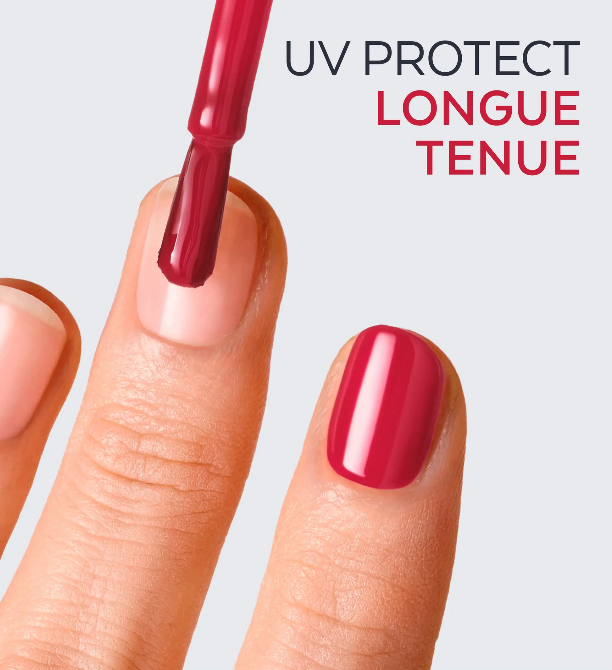 Les vernis Color Care et Color Strong offrentune protection UV pour protéger vos ongles et la peau sous l’ongle des dommages des rayons (hors top, base, gloss vitality et gloss éclat).